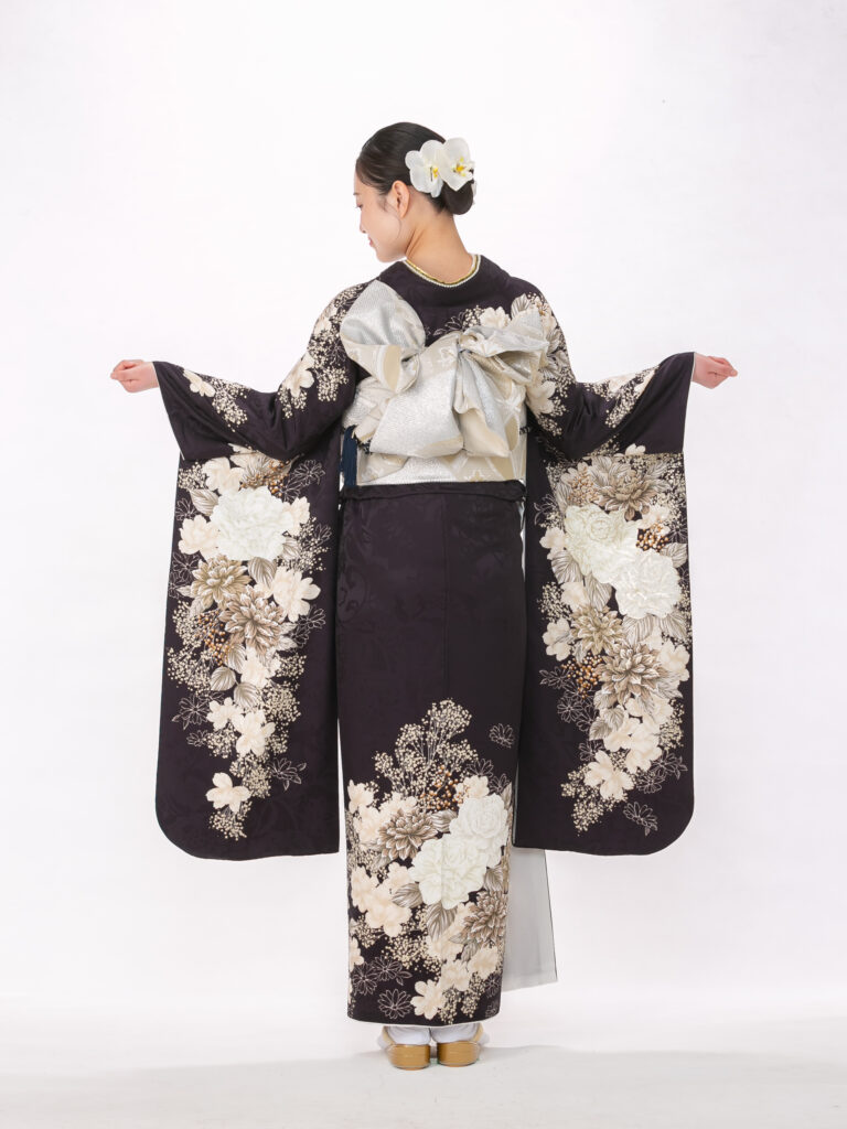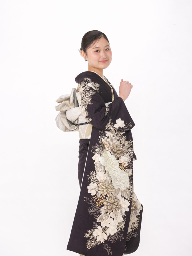 黒地を基調とした凛とした格調高さや 大人の雰囲気を演出する振袖。 伝統的な古典柄の良さと、 現代的なクールで大人っぽい印象に。